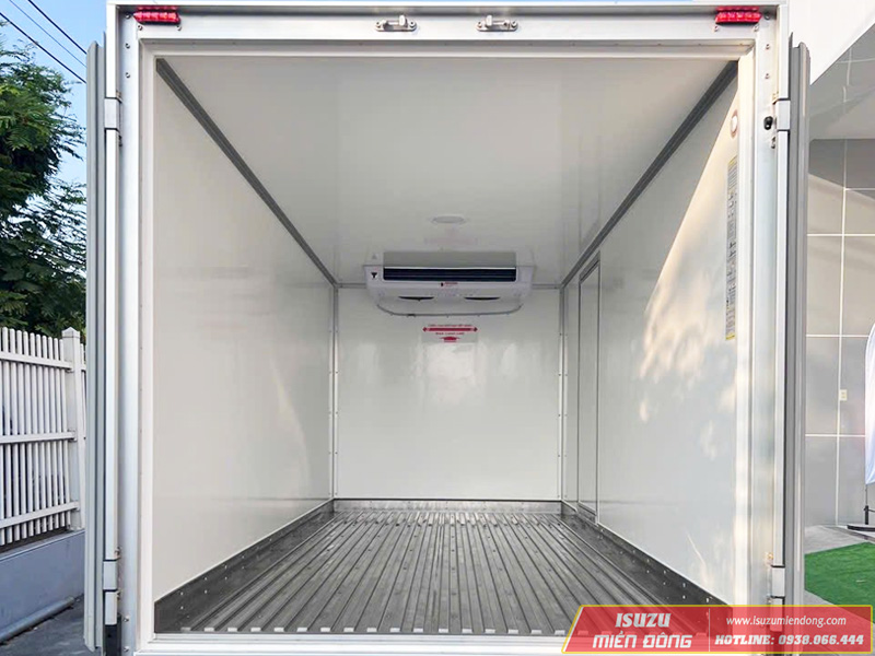 Cản sau thùng đông lạnh được làm bằng thép chắc chắn. Cánh cửa được gắn phụ kiện cao su chống va đập cửa. Tất cả góc thùng đông lạnh xe tải Isuzu đều được ốp một lớp cao su chống va đập. Đà dọc làm bằng hợp kim nhôm vô cùng chắc chắn, có đèn báo chiều cao sau thùng và trước thùng. Hai bên hông thùng cũng được lắp đèn hông và có rào chắn không thùng.